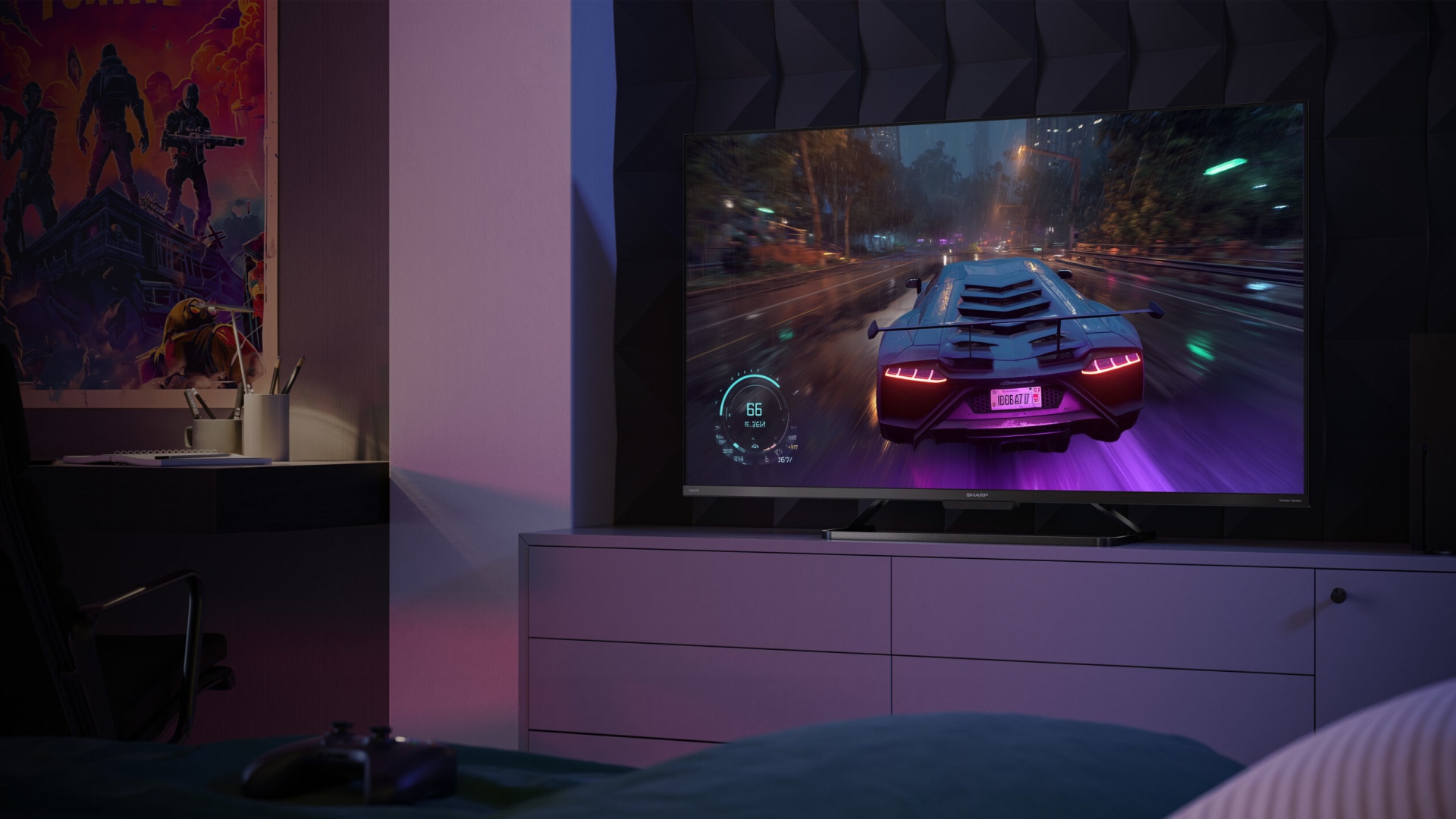 Ciesz się najlepszymi wrażeniami z gry dzięki nowemu telewizorowi Sharp z serii FQ. Dzięki ultra-płynnemu ruchowi i błyskawicznym czasom reakcji Twoje gry będą bardziej realistyczne i responsywne niż kiedykolwiek. Szybkie reakcje i zredukowane opóźnienia sprawiają, że każda akcja jest natychmiastowa. Podłącz swoją konsolę lub komputer i doświadcz niezwykle płynnej rozgrywki – niezależnie od tego, czy ścigasz się, walczysz, czy eksplorujesz nowe światy. Dodatkowo bogaty, potężny dźwięk ożywia każdą chwilę.